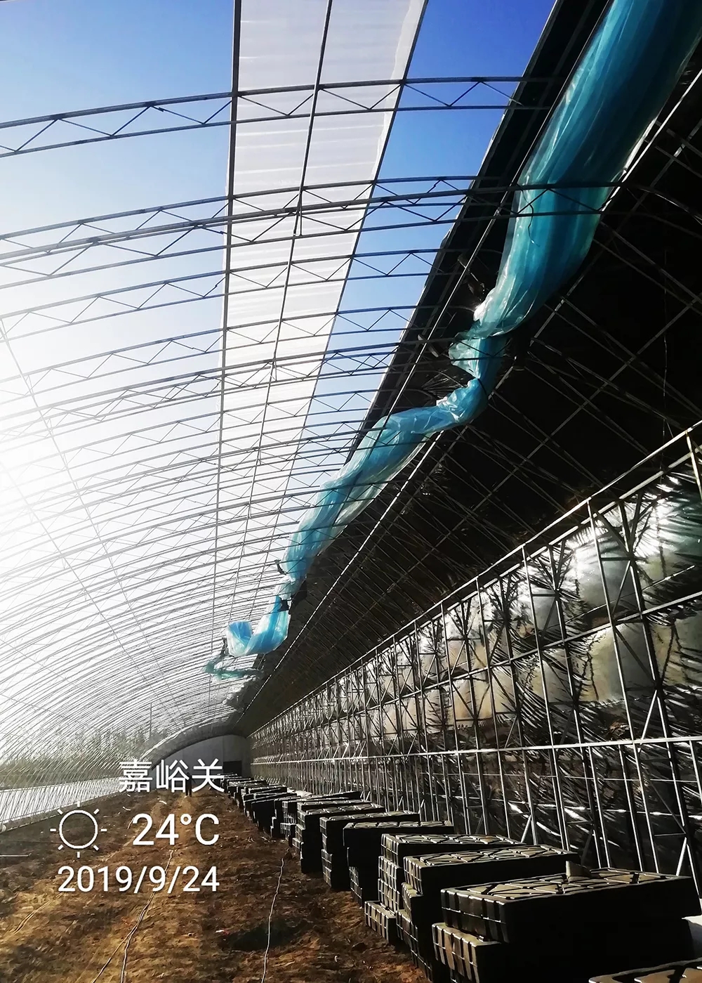 為深入實施鄉(xiāng)村振興戰(zhàn)略,促進農(nóng)民持續(xù)增收以及全力推進嘉峪關(guān)設(shè)施農(nóng)業(yè)發(fā)展進程,2019年,嘉峪關(guān)市政府引進內(nèi)蒙古農(nóng)業(yè)大學(xué)與內(nèi)蒙古中天科技有限公司聯(lián)合研發(fā)的“水蓄熱雙膜內(nèi)保溫裝配式日光溫室”新技術(shù),在嘉峪關(guān)市城關(guān)鎮(zhèn)新城村建設(shè)4棟高標(biāo)準(zhǔn)水蓄熱雙膜內(nèi)保溫裝配式日光溫室,占地面積約20畝,建筑面積約為10畝(溫室規(guī)格:長度為135米,跨度為12米,脊高6.1米)。