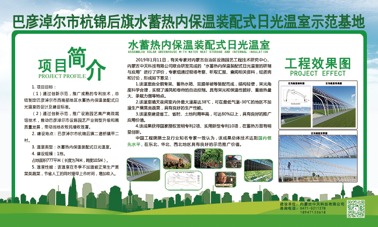 為進一步促進本地區農業轉型與高質量發展,2020年巴彥淖爾市杭錦后旗二道橋鎮主要領導及相關部門負責人通過實地調研、認真考察正式引進“水蓄熱內保溫裝配式日光溫室”專利集成技術及溫室產品,并于2020年9月28日順利通過驗收并正式投入運營,該項目將實現以下主要目標: