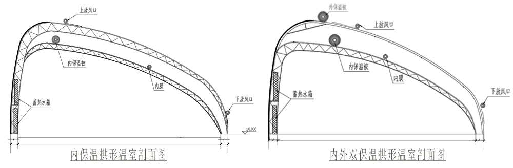 新型水蓄熱內(nèi)(雙)保溫裝配式拱形溫室具有以下特點(diǎn):